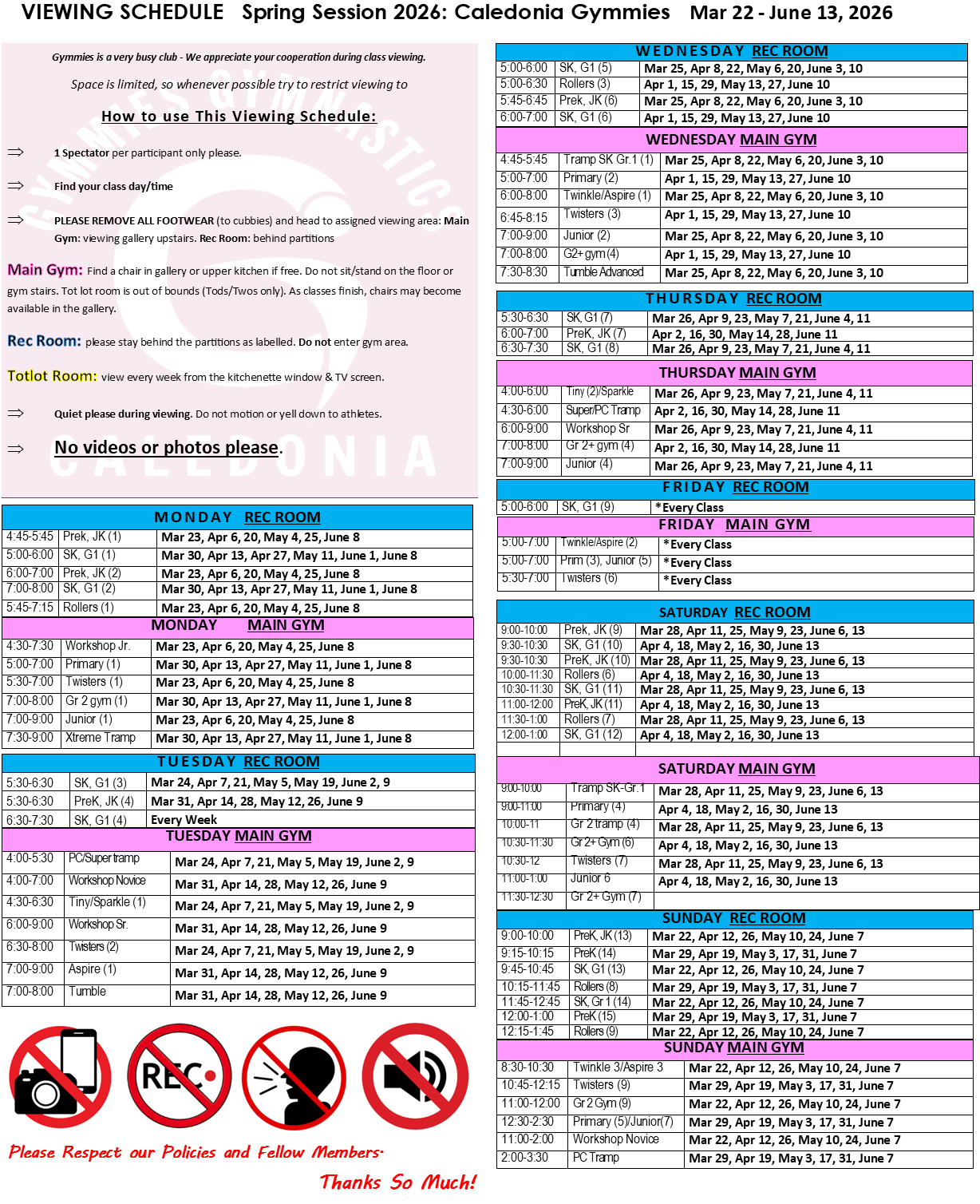 *Classes subject to $45 Membership fee July - June All class settings are a progressive learning environments following the CANGYM badge system